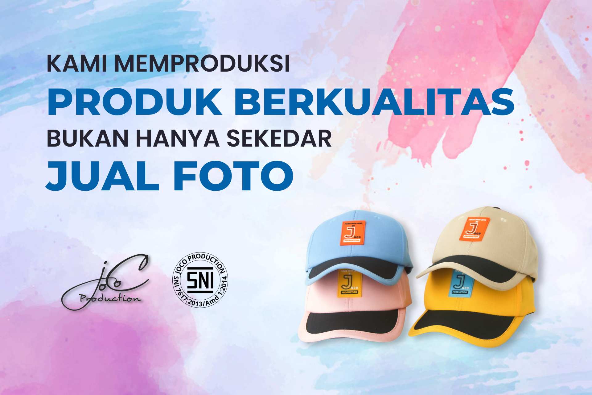 Joco Production menghadirkan aneka model dan varian topi anak berkualitas dengan pemilihan bahan dan desain yang tentunya sudah melewati proses kurasi yang baik, serta sudah mendapatkan sertifikasi SNI.